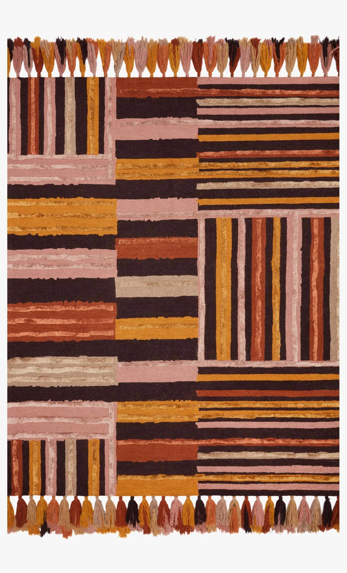 The Jamila Collection is hooked of wool and rayon by artisans in India and offers next level bohemian and eclectic designs. Designed by Justina Blakeney for Loloi, the collection features playful tassels and bold yet current colors, instantly adding personality in any space.