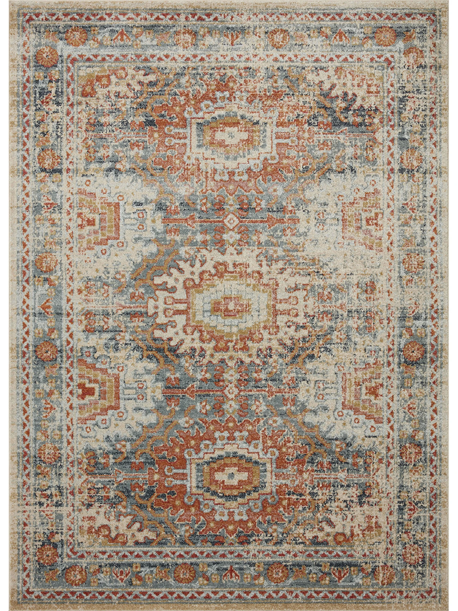 Power-loomed of Polypropylene in Turkey, the Jocelyn Collection displays antique-inspired motifs, modernized by a rich color palette and a construction designed to withstand foot traffic.