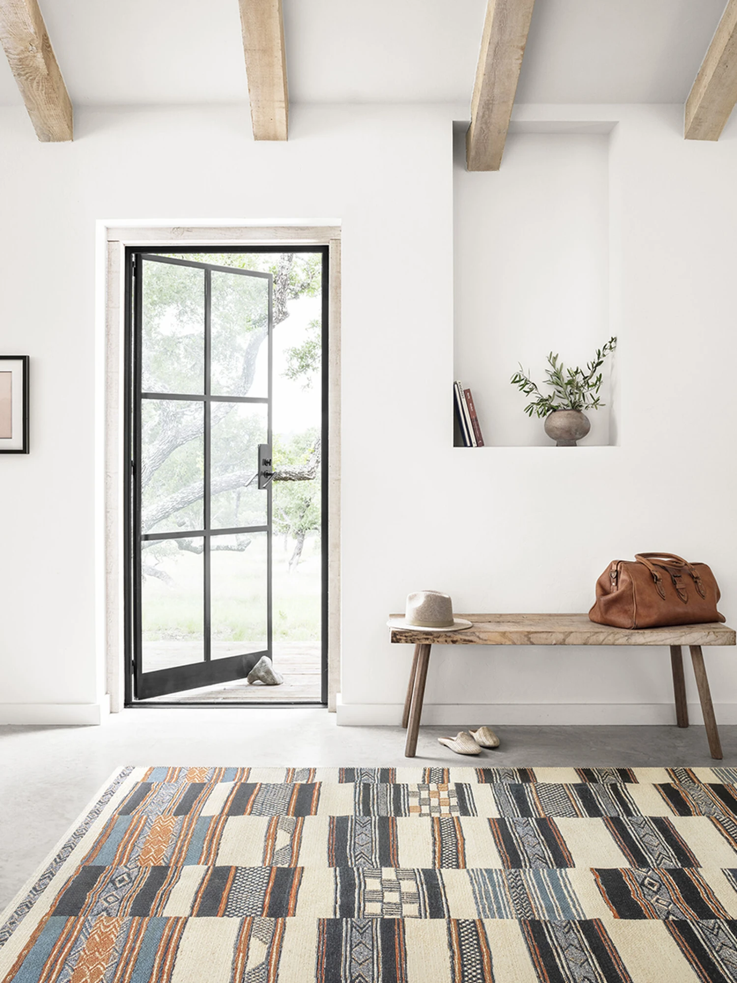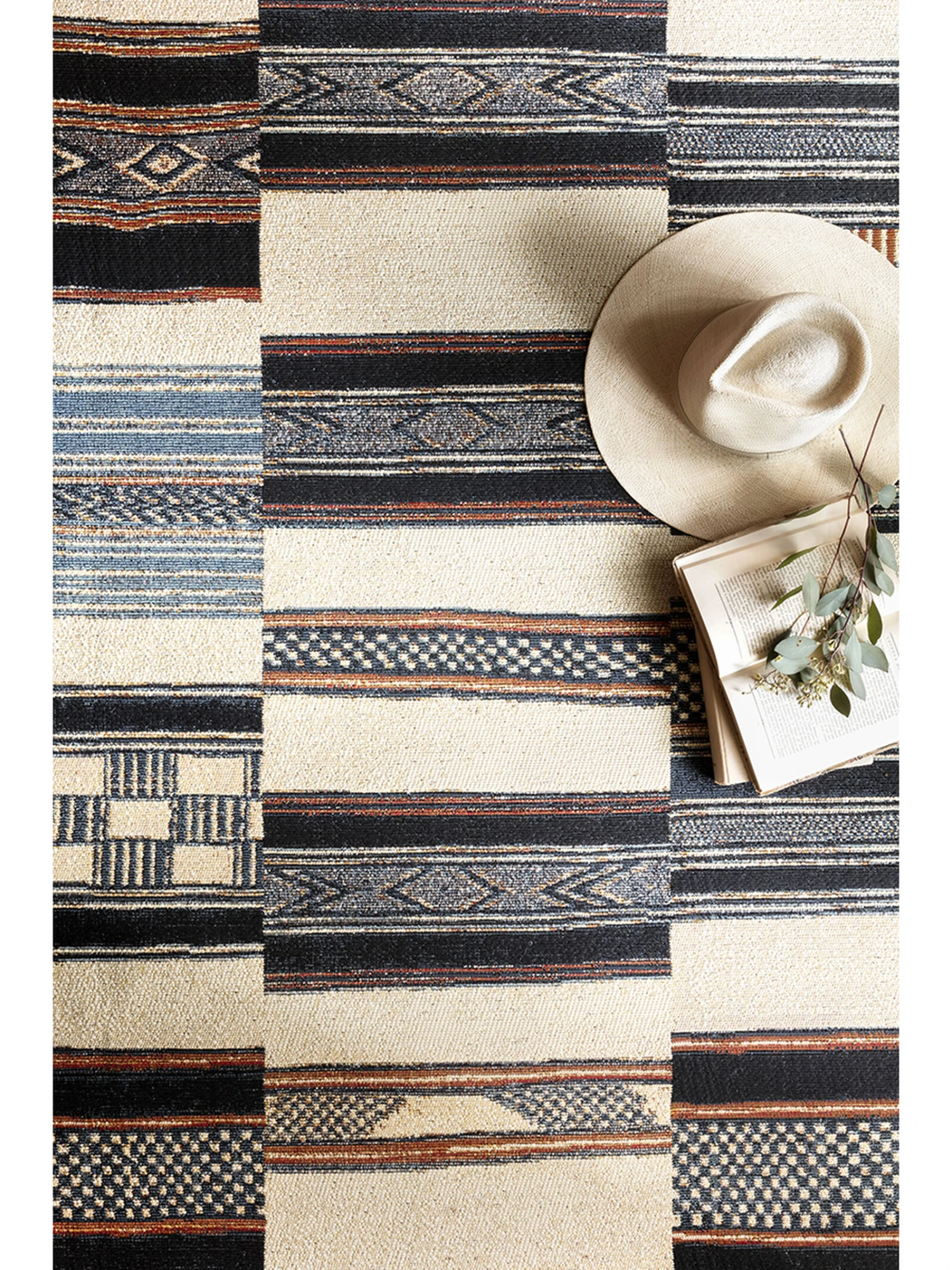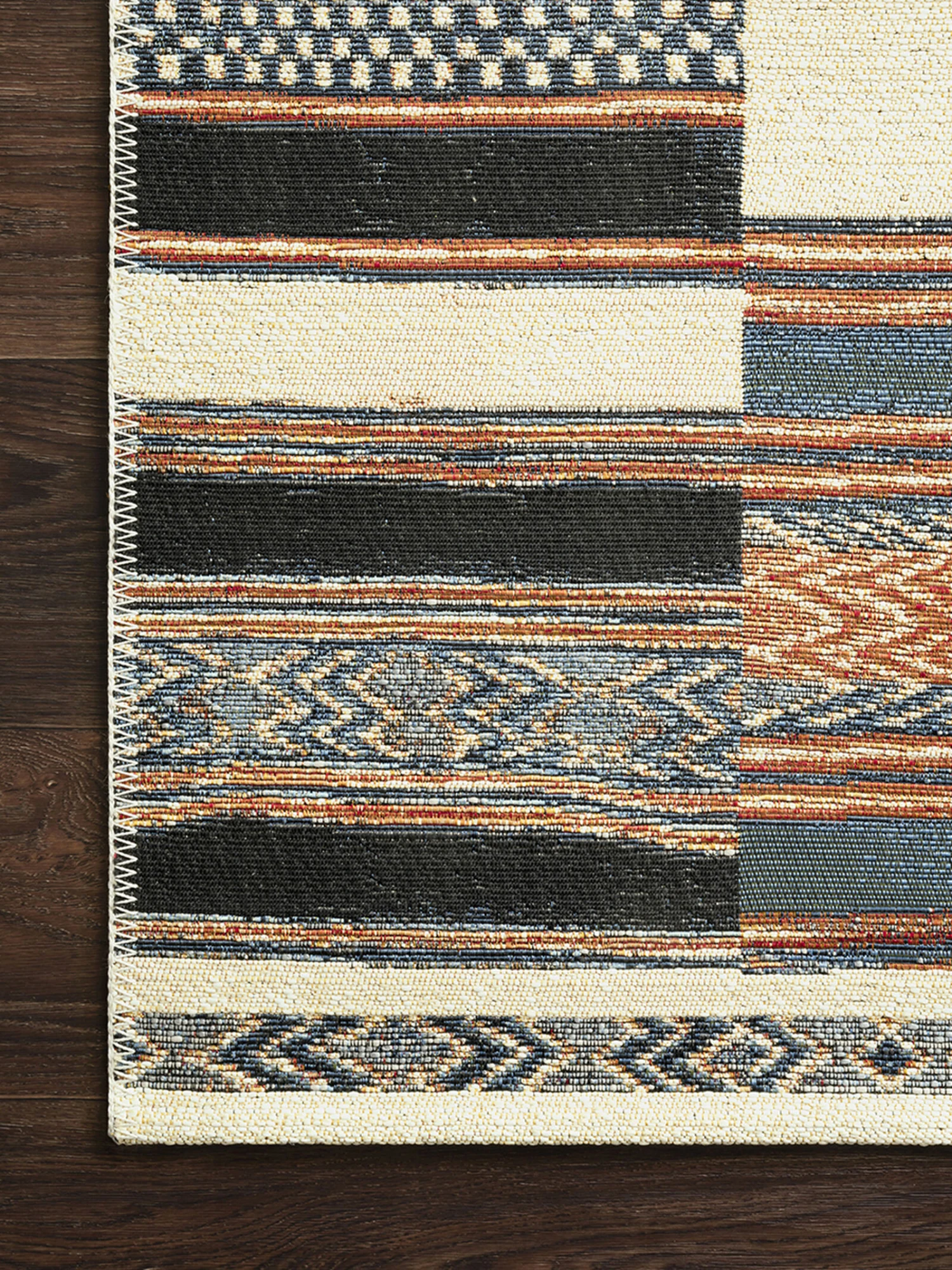 Power-loomed of polypropylene and polyester in Egypt, the Mika Collection is a spectacular display of abstract and tribal-inspired designs. The textured yarn adds beautiful dimension and creates a truly unique look that is long-lasting and durable for outdoor and indoor spaces. Each piece is accented with a blanket-stitch finish.