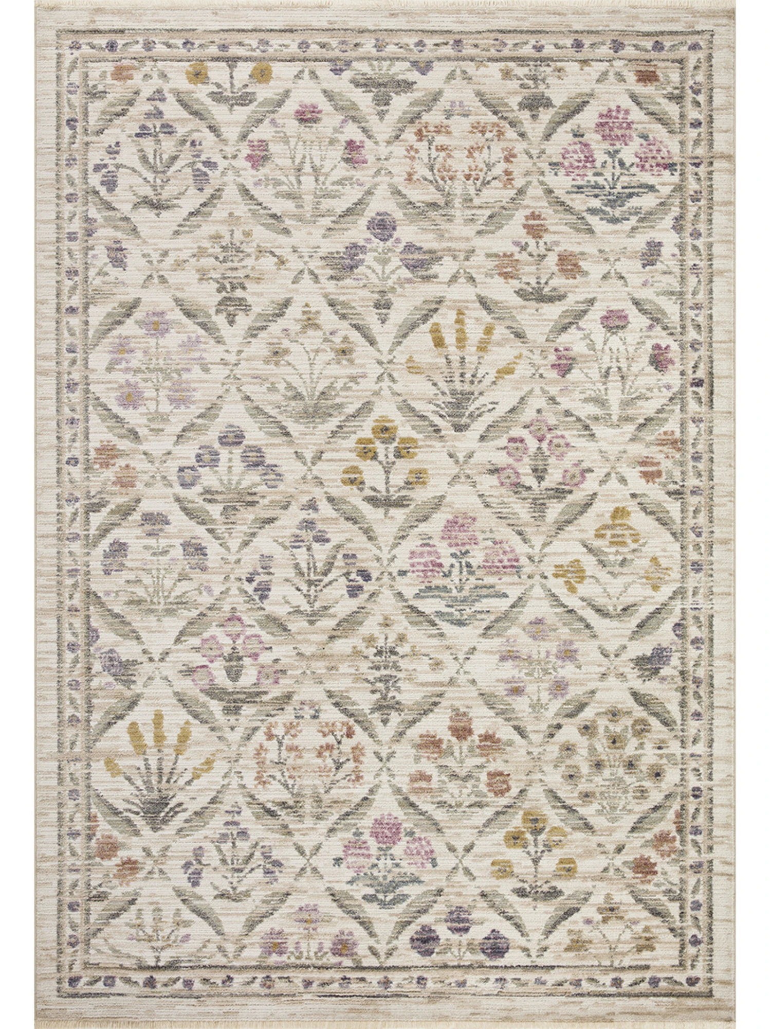 Area rugs in the Provence Collection by Rifle Paper Co. x Loloi are inspired by vintage French fabrics with repeating floral patterns in gently faded colors. Power-loomed of polypropylene and polyester in Egypt, this rug is especially durable in busy living rooms, while it also makes a lovely addition to bedrooms, children’s rooms, and hallways.