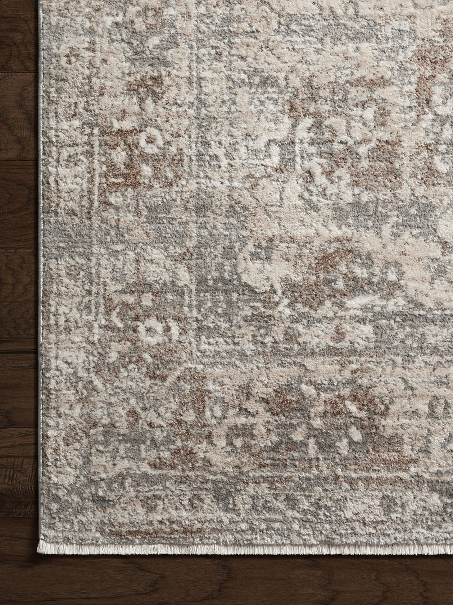The Sonnet Collection is a versatile area rug with traditional motifs that appear to float and fade from the surface, the result of a new power-loomed construction that combines yarns of different textures. The rug is made of space-dyed polypropylene and polyester for a gradient range of colors that shift with the light. A hint of fringe in most sizes, combined with the meticulous design, makes it hard to tell that this rug isn’t handmade.
